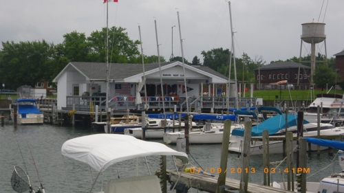 After getting settled and signing in, we took a walk around town and found a latino food store, P & D Foods. It wasn’t big, but I was able to get some fresh mushrooms for beef stroganoff, tomatoes, and milk. Dunkirk Yacht Club is a small club with a mixture of power and sail boats. We saw 5 C&C Sharks sail boats, one called Warpath that had a sharks mouth with teeth and eyes painted on the bow. I wouldn’t be surprised if a WWII Veteran owned the boat as the decals on the side of the boat reminds me of the decorations the pilots had on their planes in the war.