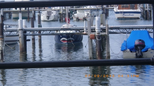This morning we started the engine at 630am with cloudy skies and plenty of water on the boat. With Lorraine at the helm, Phil raised the anchor at 645am. By 715am we had exited Erie Harbor and were on our way to Dunkirk, NY, deciding to have an easy day of it. We started out motor sailing to help charge the batteries. Early on there was a little drizzle but that didn’t last for long and it was sure nice to have the window in the dodger to duck behind. After 5 miles, the wind had picked up to over 10 knots as little white caps were forming on the waves. We had a nice sail reaching with the winds from the south and waves <2 ft. Early afternoon the winds really died and even though we hoped for a shot of wind in some clouds coming up to us, we had to start the engine with 4 miles left to Dunkirk. By 215 pm we were docked and the lines adjusted. These docks are high but work just fine. We are as far away from the clubhouse as you can be.