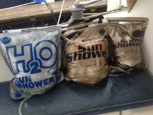 This last photos are the Sun Showers full of water. The next several days are to be sunny, so I’m sure we’ll be able to have hot showers as long as we take them before the sun goes down. Lorraine’s happy!