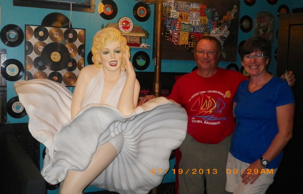 Laura took a photo of us next to Marilyn Monroe. Phil looking under her skirts.