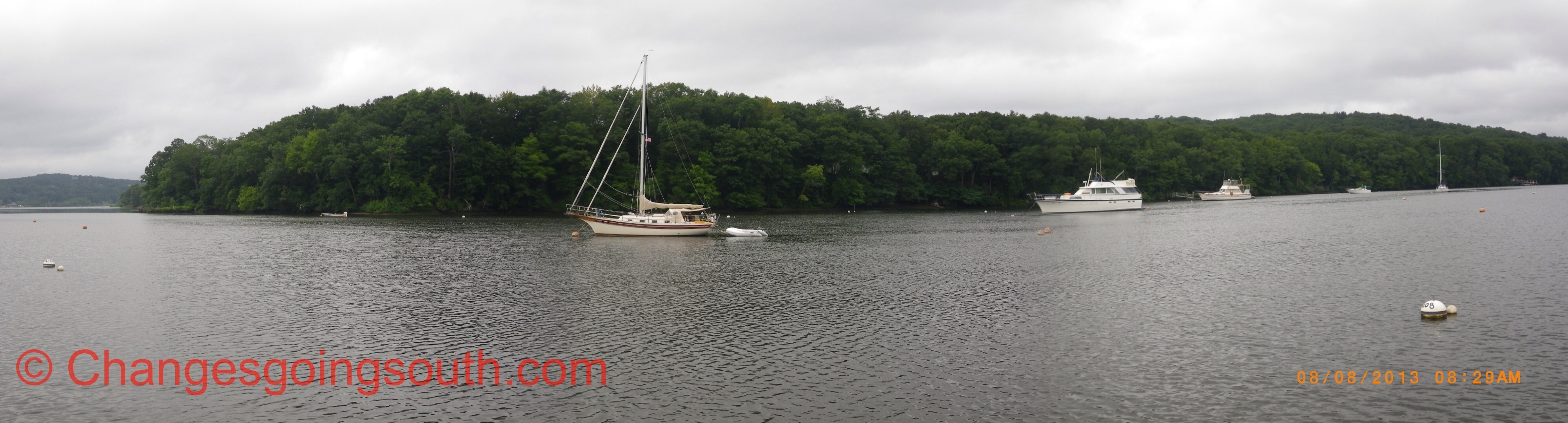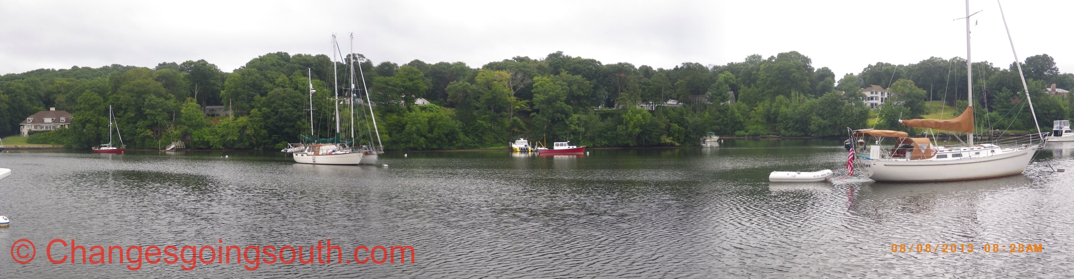 We plan to stay here at least until Saturday and maybe even until Sunday when the good weather returns. We have been traveling a lot, so deserve some rest days. I’ve been told that Essex is a good place to visit about a mile dinghy ride away, which we would like to do.