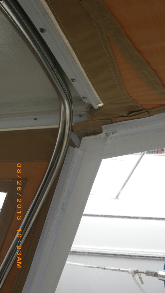 Mostly finished side windows. Need Phil to put on quarter turn hardware to attach to Bimini tubing.