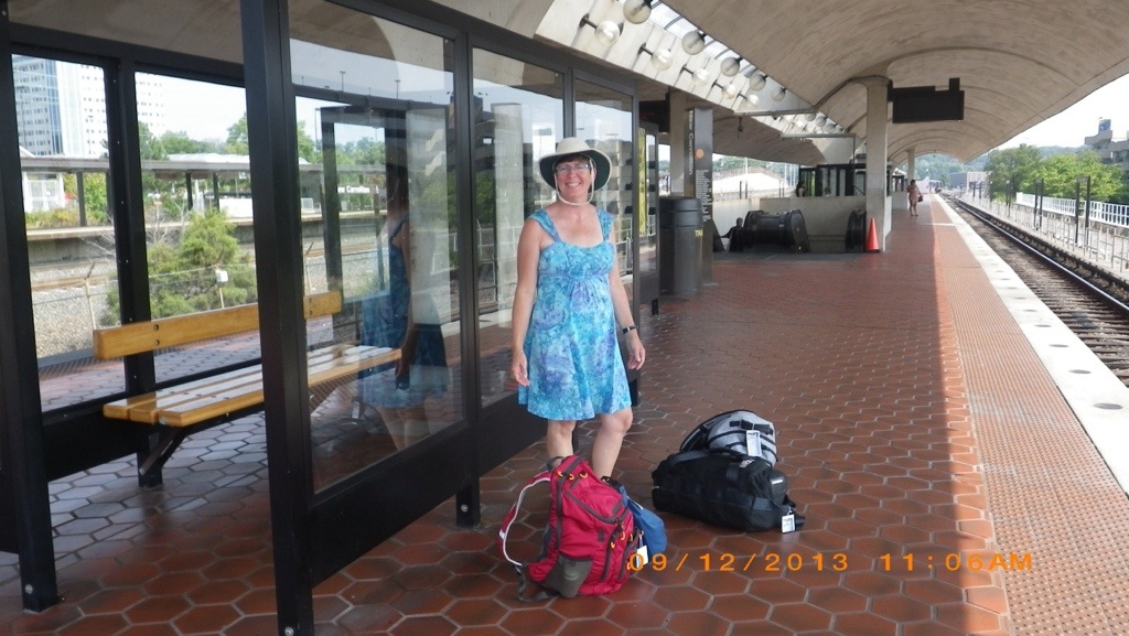 Today we are going to Arlington, VA to visit Phil’s cousins Karen and Jerry. We woke early at 6am and left the boat at 645am to walk a little over a mile to the Bus stop. When we got there, the 160 express bus just arrived and not knowing if we should take it, we waited for the 23 bus, which turned out had 83 stops. Phil thought that it took us to Camben Station to catch the MARC train to Washington D.C. Union Station, but it wasn’t until we were downtown that we found out that we needed to get off and catch another Bus which one unknown to us. Looking at the map on our iPad, we decided to hoof the approximately 1 mile to Camden Station going through some not nice areas. We made it there at 9am 1 hour after the last rush hour train. Fortunately they had a lite rail shuttle train that took us to Penn Station and there we were able to get the MARC train for $7/person to Washington. We could have caught some Amtrak trains, but they were much more expensive.