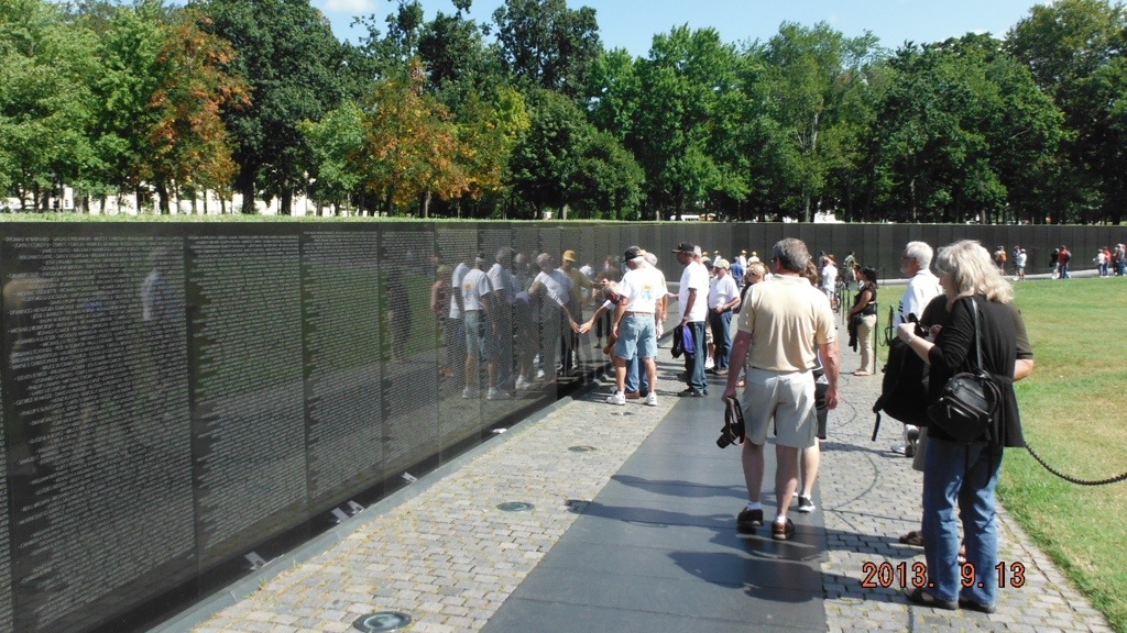 Then the Vietnam Memorial, which we hadn’t had the opportunity to see since it was built. There were a couple groups of Veterans visiting, one with wives taking photos. It’s a moving memorial and a volunteer told us how the names were inscribed on the wall and the meaning to the order in which it was done.