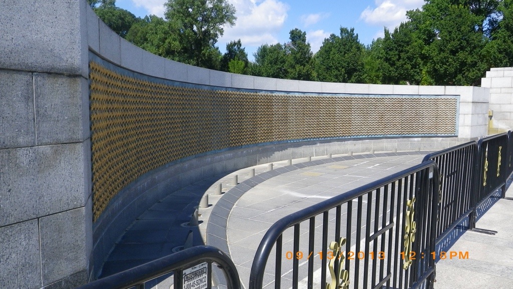 They talk about the Atlantic Theater and the Pacific Theater of the war, have 3D murals and a water fountain. Around the fountain, they have the states and territories that participated in the fight.