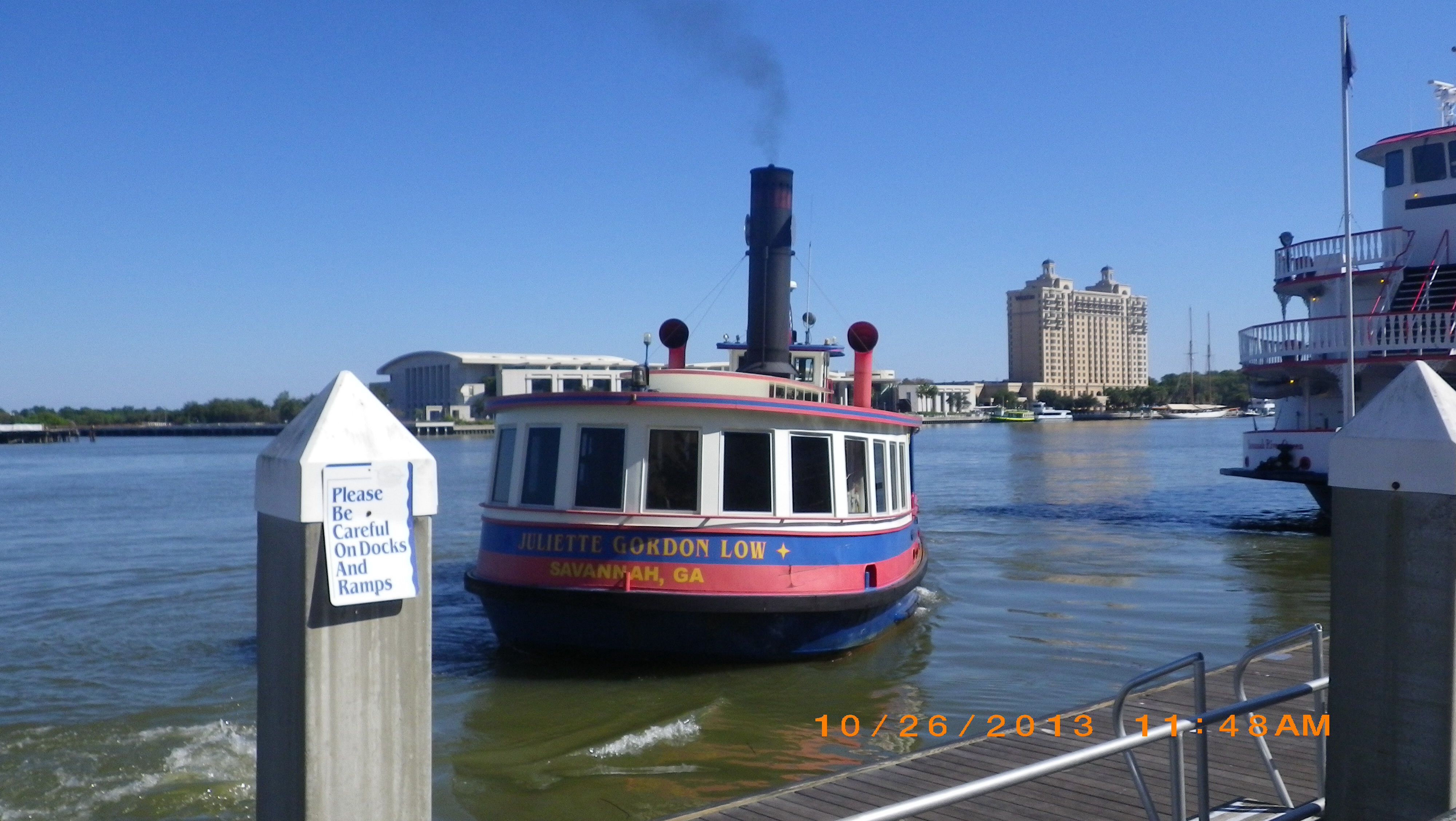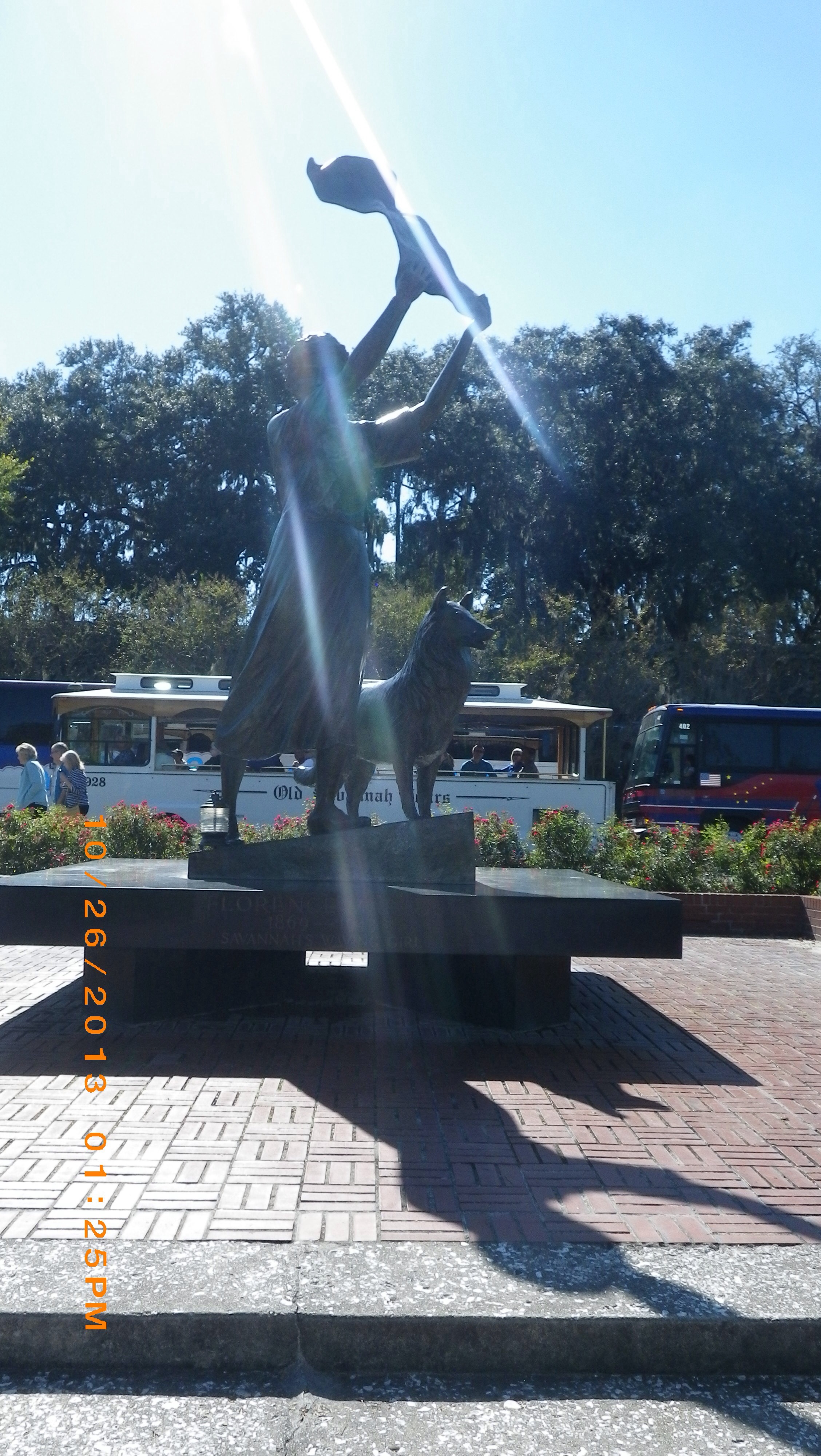 Today is the day that Phil and I were tourists in Savannah, GA. We drove the dinghy about a mile to Hogan’s Marine and walked to wait for the bus. It was running a little late, but once we were on everything went smoothly. Being close to Halloween there was a dog costume parade and trick and treating for the dogs so we we’re let out before our stop. No matter, we walked through some of the many public squares.