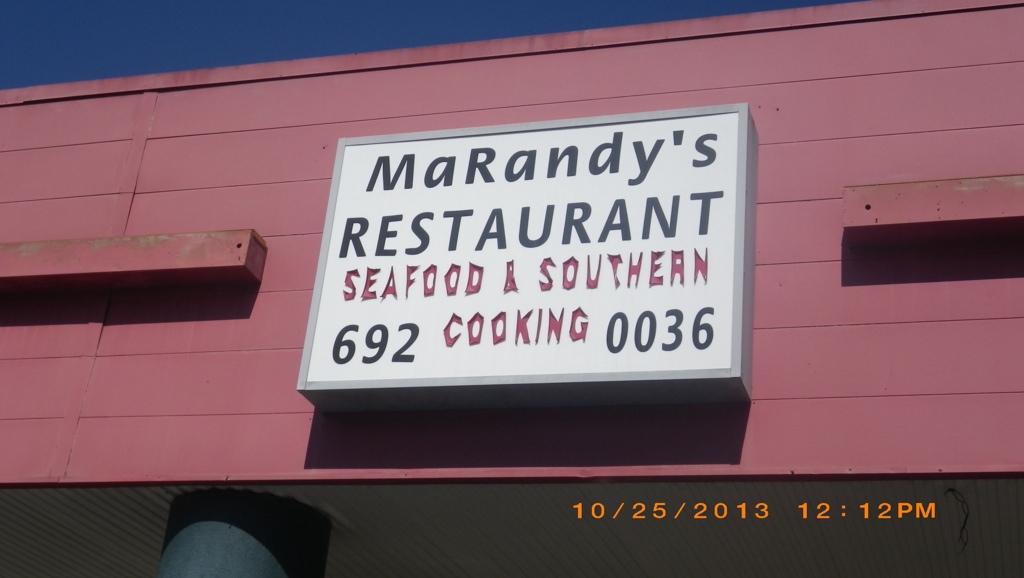 Back at the boat Bentana and we cast off at 1010am and were rafted off them by 1044am closer to the entrance of the creek and past the sand bar area. Ron Kent, the local SSCA Cruising Station host picked us up at Sail Harbor Marina after we docked the dinghy in from of SV Luna Sea owned by Mark and Jennifer P, whom we met through WWS FB group. Ron took us to Marandy’s Restaueant, a local southern food restaurant as a treat.