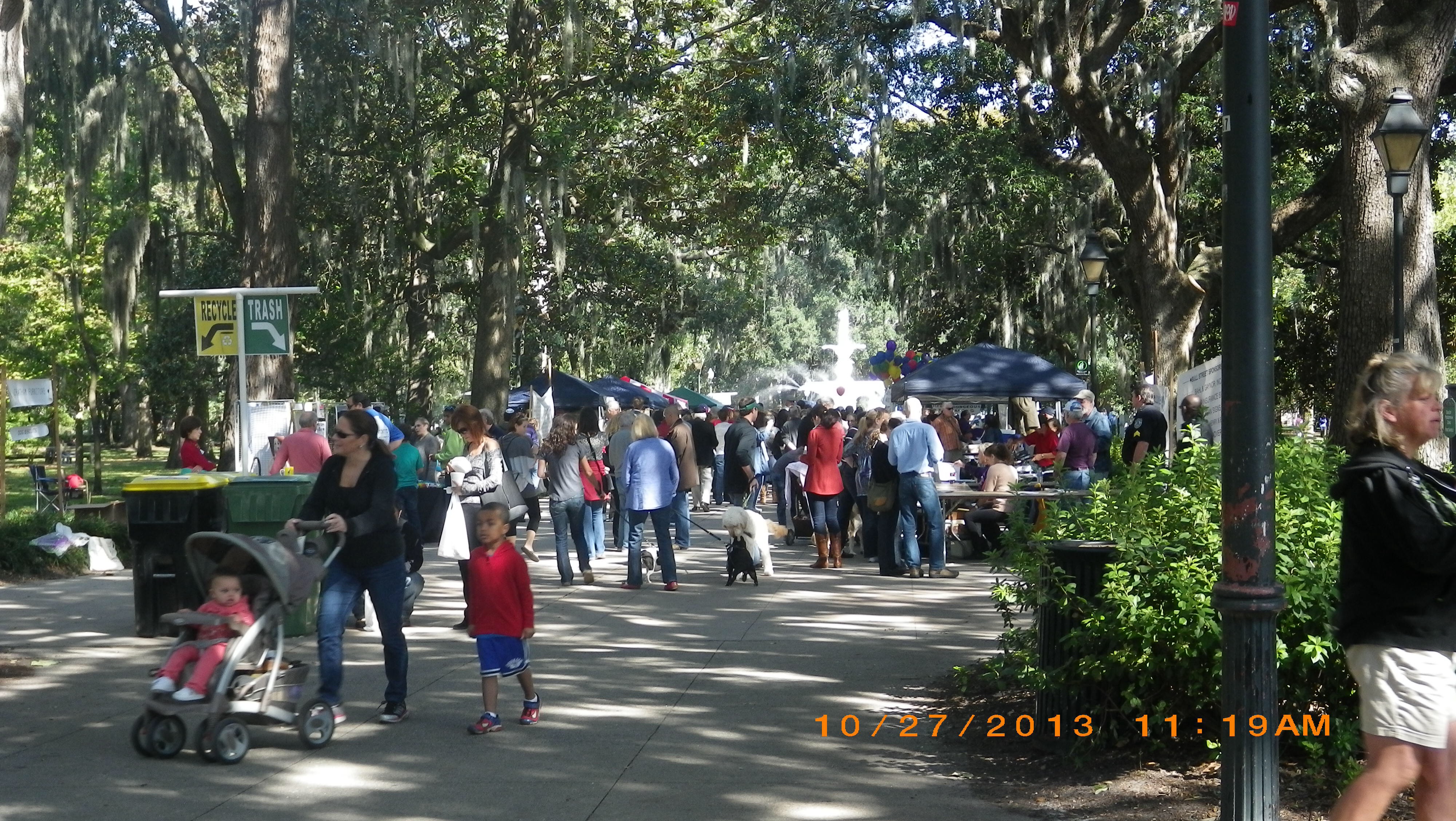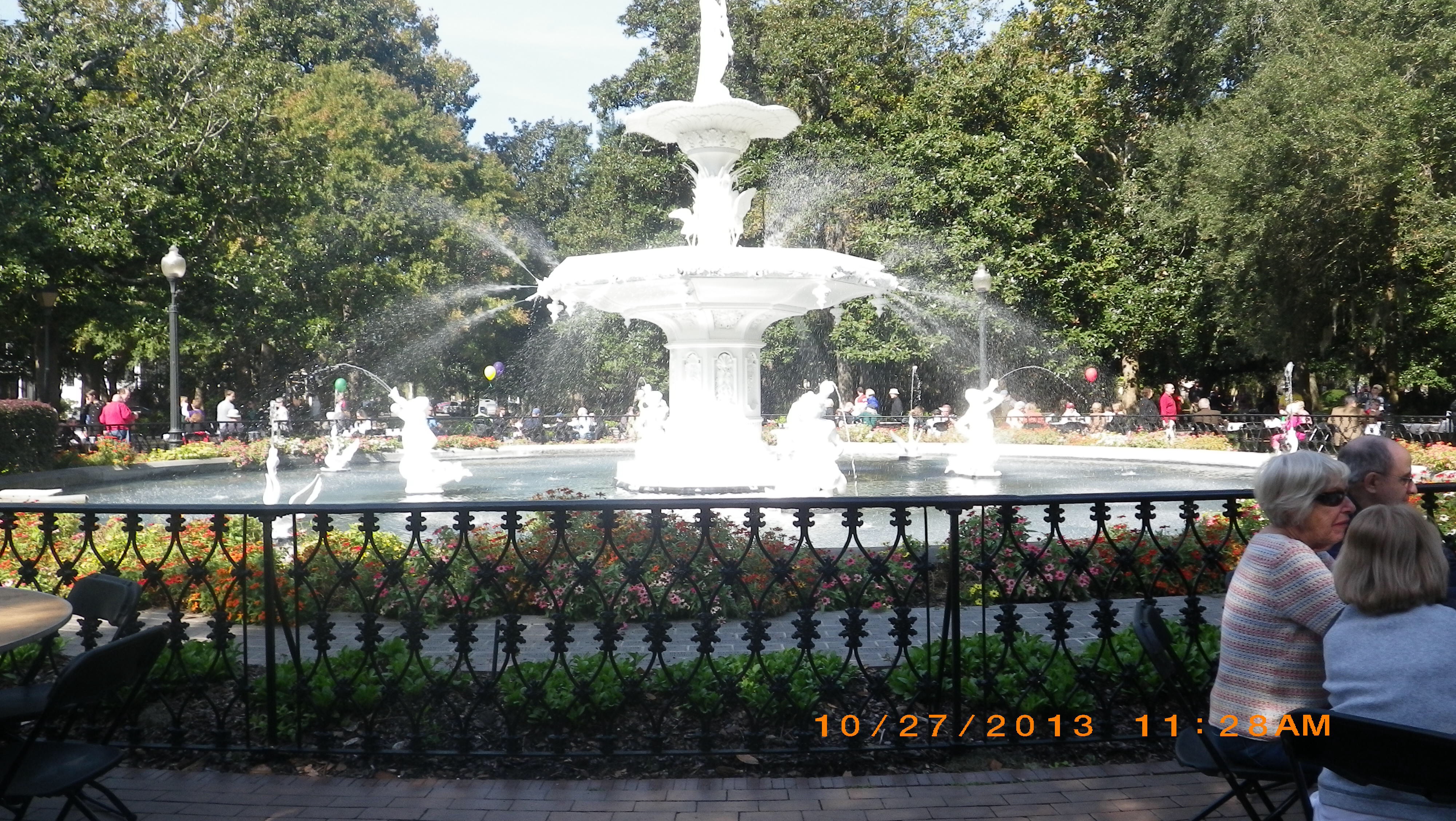It was 45 F outside and 62F inside the boat so Phil got out the propane camping lantern to heat up the boat. We touched base with our friend Randy on SV Lipari and they will probably be leaving Oct 30 for the trip to BVI’s. Too bad we won’t get to see Randy before he leaves. It just didn’t work out.Today we are going with Mark and Jennifer in their car with Judy and Steve to Forsyth Park in Savannah for the Jewish Food Festival. You buy tickets to try many different foods like Deli Sandwiches (corned beef, pastrami, or tongue), Potato Latkes, Fresh Blintzes, Fresh Challah, Hummus & Pita, Kosher Hot Dogs, Brisket, Sizzling Sephardic Lamb, Stuffed Cabbage, Sodas, including Dr. Brown’s® Sweets from our Sisterhood. I had the latkes, corn beef, blintzes with Phil. They also have live music playing. This is an annual event and really a good place to try Jewish food if you haven’t had it before!