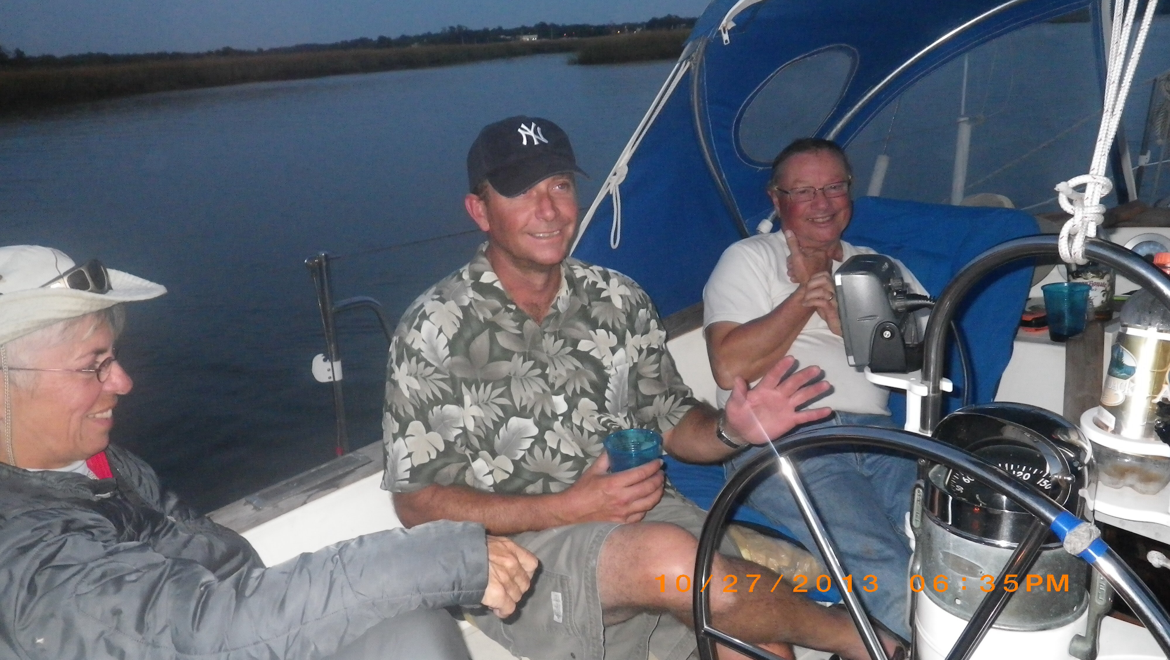 Forsyth is a beautiful City Park one block wide (you can see the streets on both sides easily) and a several blocks long. It’s really very nice!After we had eaten our fill, I got a call from Ken Blyth from SV Sail Away who is in the area on his way to Green Cove Springs to prepare his boat for the upcoming cruising season. Mark gave him great directions so meet us at the park. While Judy, Steve, Mark, and Jennifer went to Jekyll Island, we joined Ken while he ate lunch at Bernie’s Oyster Bar. We had a great time catching up and he was kind enough to get us back to Sail Harbor Marina just in time for when Judy and Steve were going back on their dinghy.