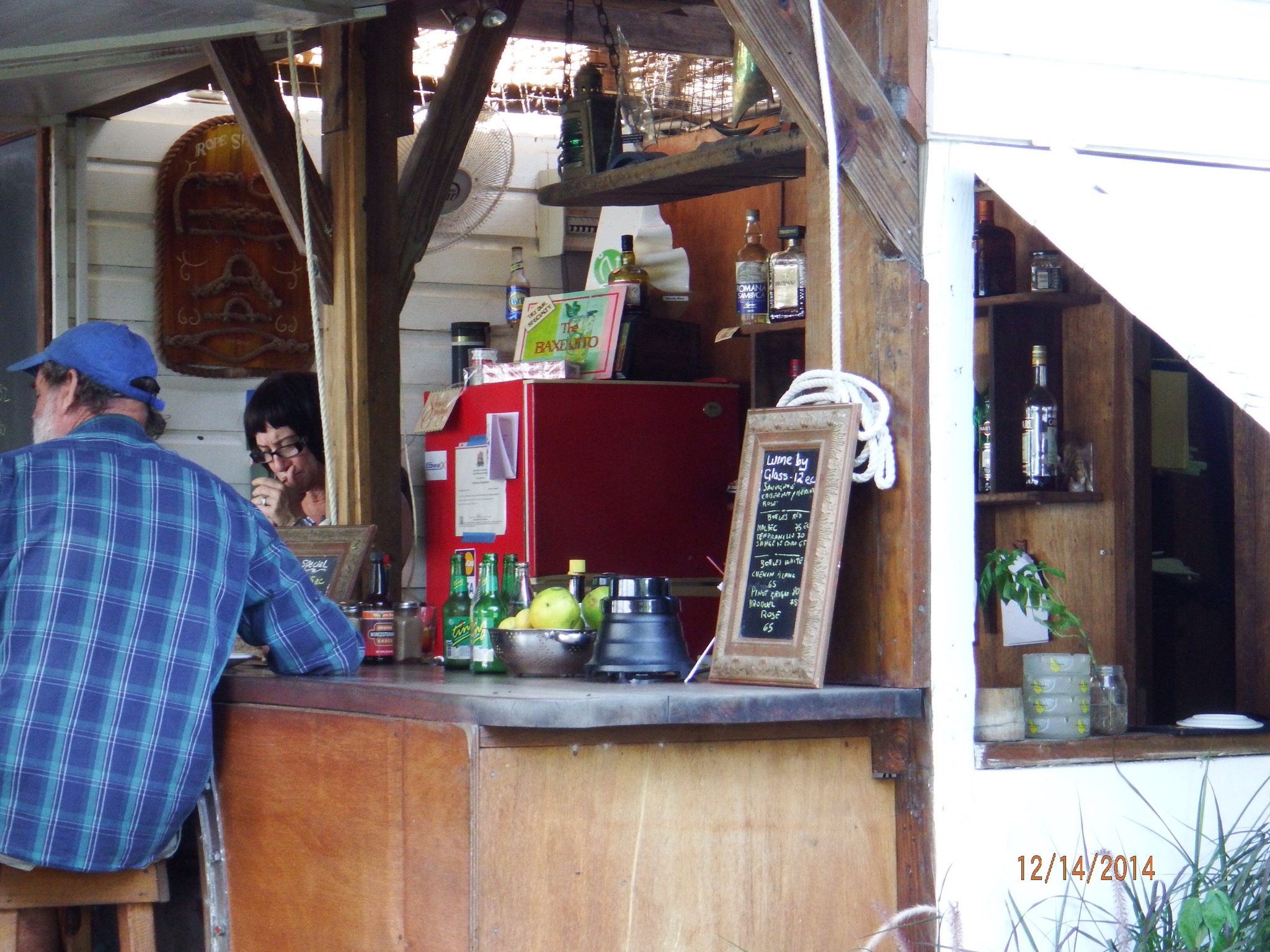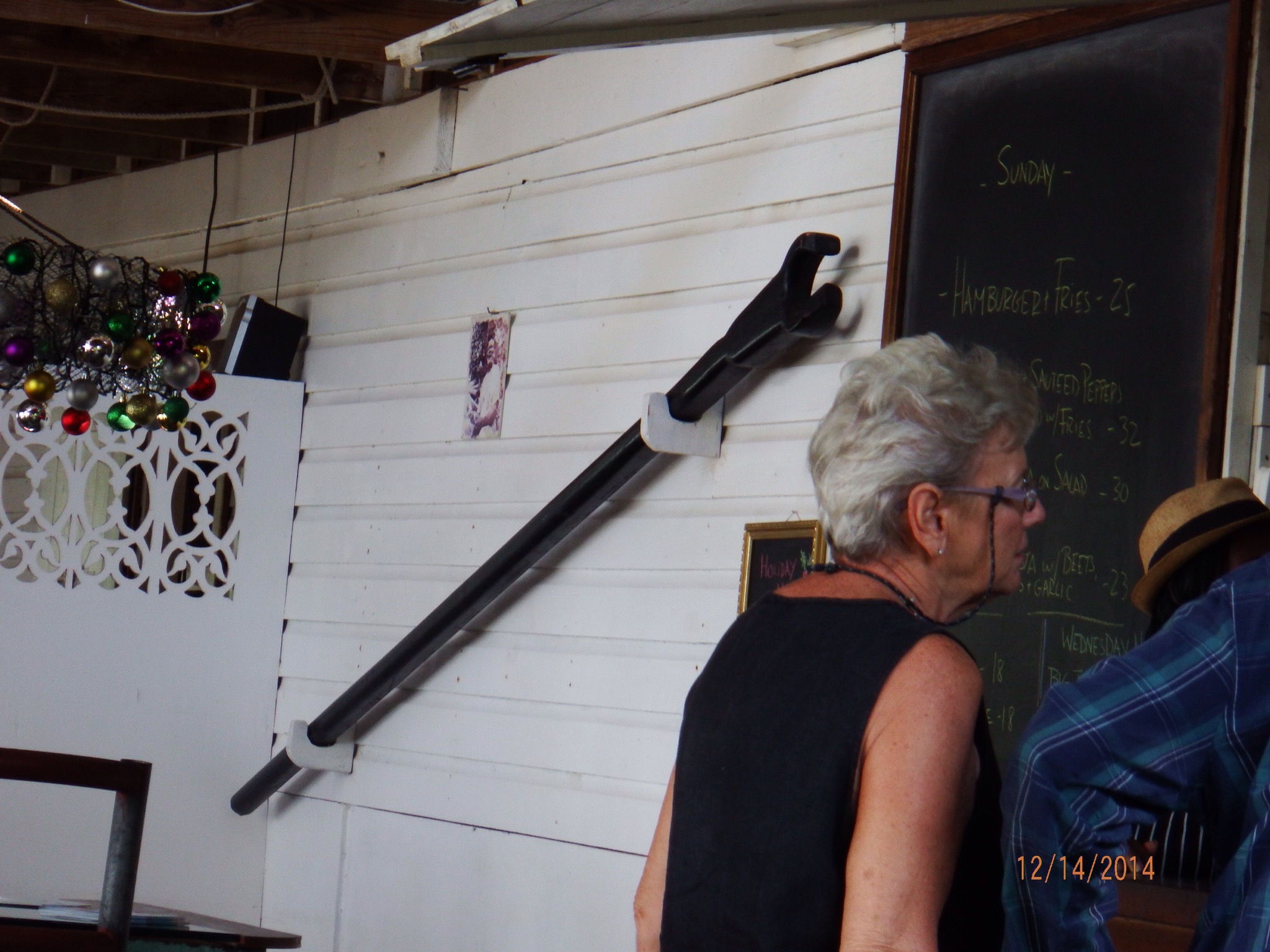 Customs was closed so we walk next-door to the Slipway Restaurant for a beers for the guys and the local drink, Ting (grapefruit soda) for us ladies. This restaurant is unique because of the ship saw, surface planer and other ship building equipment in the restaurant.