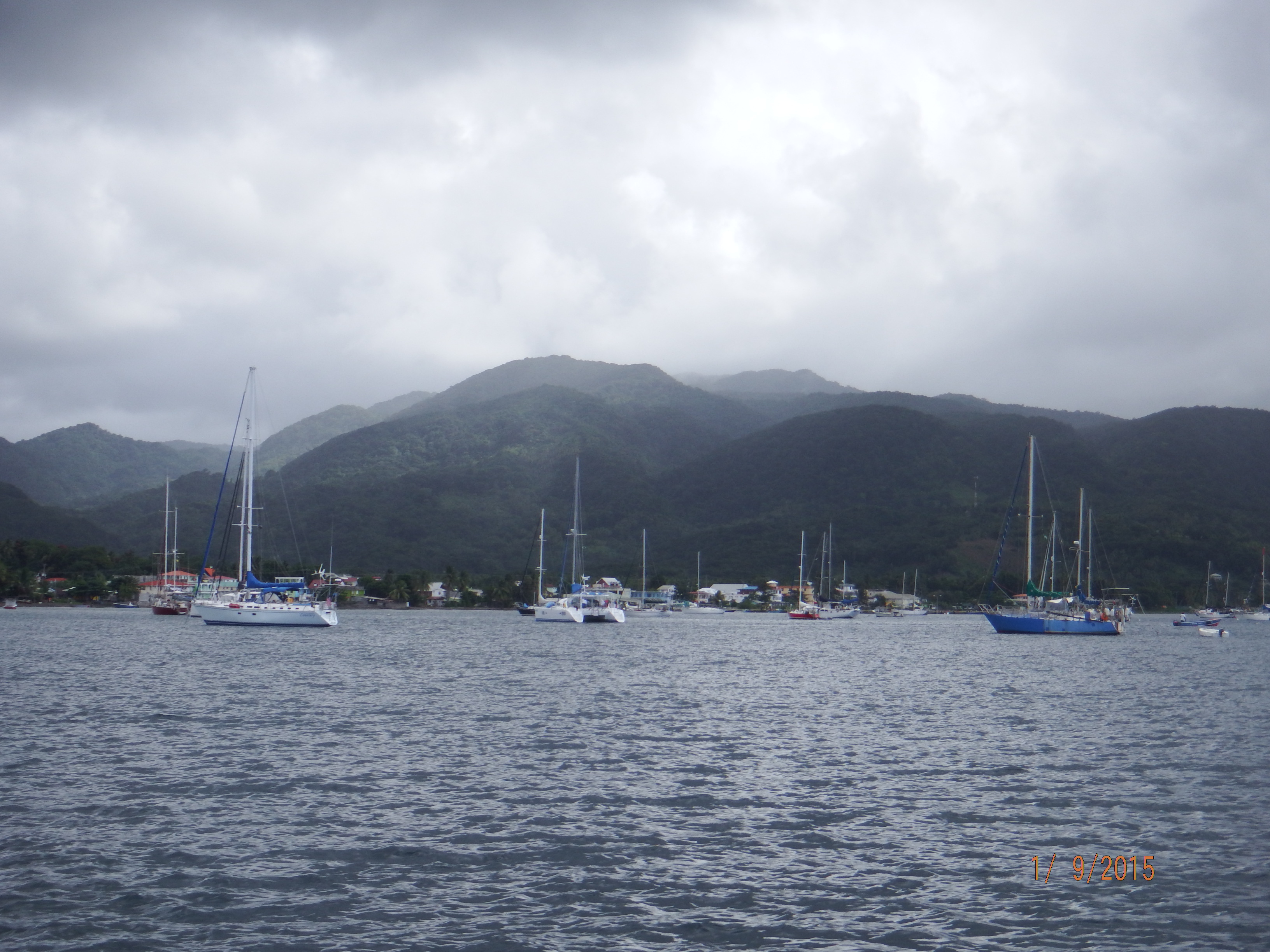 Even before we had a chance to be settled, MV My Way came out to sell us fruit and veggies. I ordered bananas, tomatoes, tangerines and cabbage. We also ordered water, which was free but a $10EC service charge. All this came to a total of $60EC. If I had been remembering from our last trip, I probably wouldn’t have ordered the food as they have a big farmer’s market on Saturday mornings.