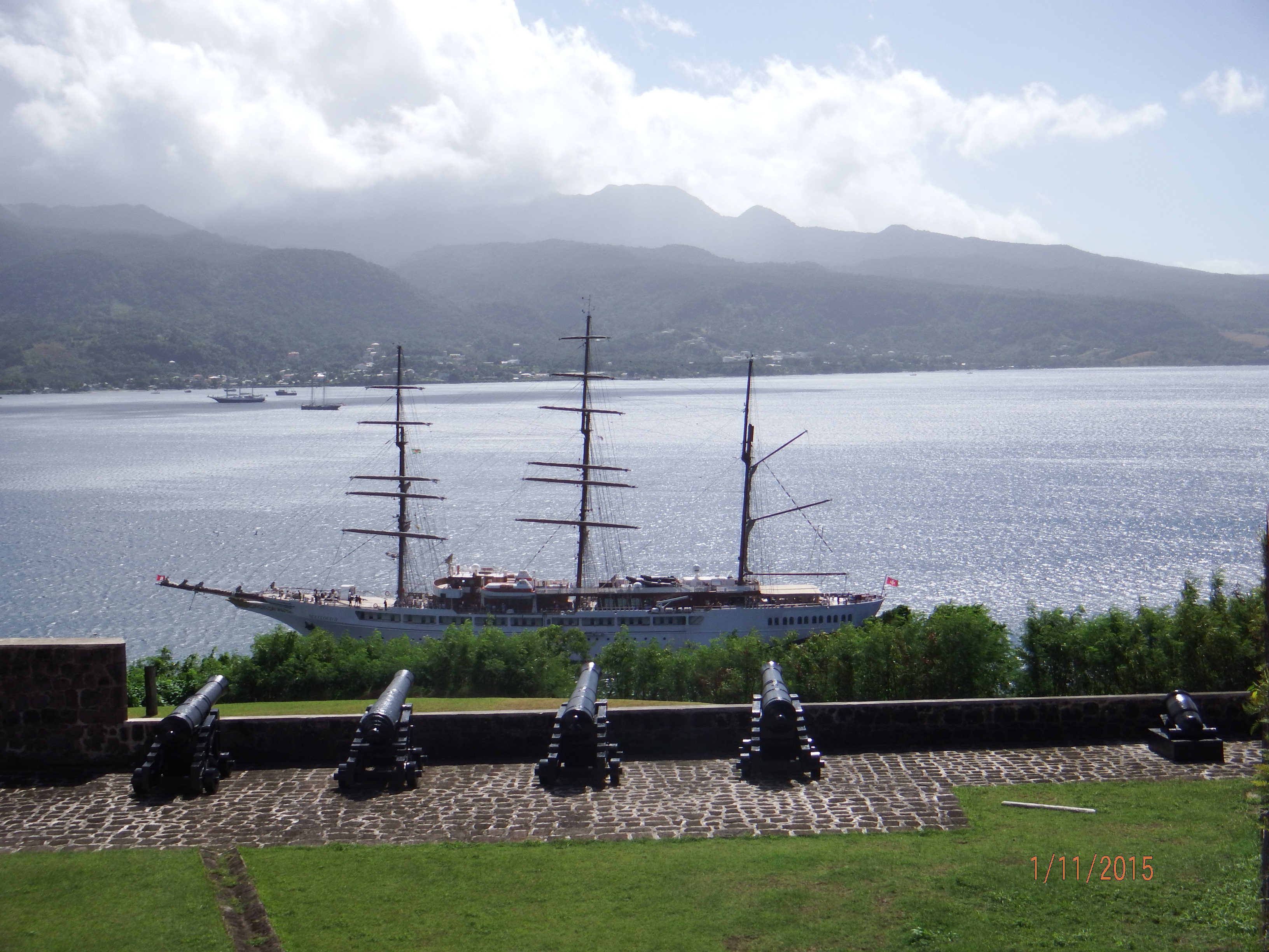 930am we met Vision Quest and Walkabout at the PALS dinghy dock and walked to Fort Shirley where we walked around the fort and saw the 3 masted Clipper Cruise Ship sail in and dock close by.
