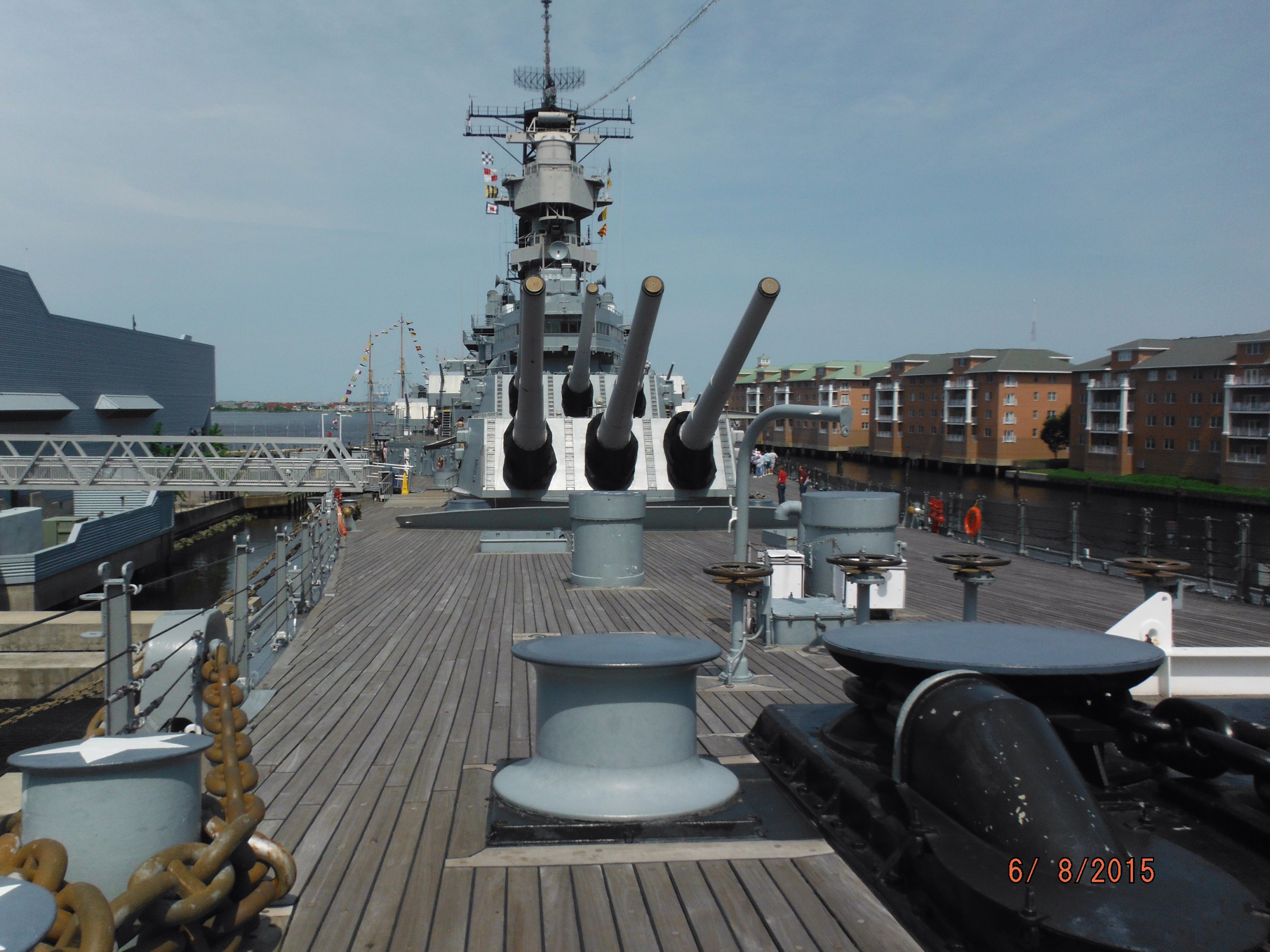 On June 6th we left and went up the North landing River to Norfolk VA.  We were unlucky as we kept missing the timing on the bridges but later in the day it got better.  After the North Landing River we entered the Albemarle and Chesapeake Canal then the East River and Norfolk.  We docked at a condo dock.  It was Harbor Fest and we spent time seeing the tall ships and other sights with friends Jeff, Janet, Andy and Sally.  After the weekend Jeff and Janet we going outside up to New York City.  Andy and Sally and us were going to buddy boat to St. Mary’s MD just up the Potomac River. We went to the navel museum, the battle ship Wisconsin and the Chrysler art museum watching their glass blowing demonstration at noon.
