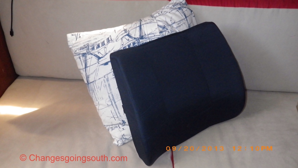 We covered the cushions in the salon, and using new high density foam has a made a world of difference in comfort sitting and sleeping on the settee during passages. I also bought a back support cushion and it’s help a lot in preventing upper back pain when sitting.