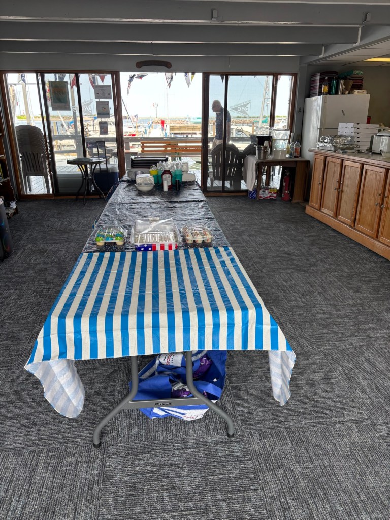 130pm Vicki and I walked to Memorial Park to check out the food vendors for lunch. We really didn’t see anything we wanted so we went to Spike Dailey’s Pub. I got a grilled chicken sandwich with potato salad and chips, which was very good. And Vic ate half of a barbecue pork sandwich and took the other half sandwich and coleslaw back for another meal. We met Phil in the park and listen to the band Party McFly for a while. The girl did most of this singing and she was good. I was tired and went back to the boat and took 30 minute nap and then joined everybody at Dunkirk yacht club for their Fourth of July party. They had the beef on weck but you could get plain buns and leave the horseradish off if that’s what you wanted. Below is a picture of this sandwich. The potluck food was good, of course and the lemon cello and pineapple coconut rum jello shot was good too.