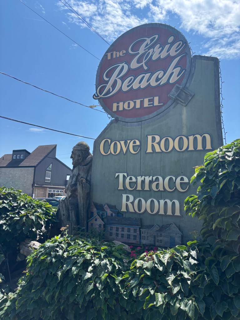 Why while riding around on our bikes earlier, we noticed the Erie Beach Hotel, which looks the same as it did when we were there at the last time we visited Port Dover. We have eaten there before, so decided to go to the terrace room for supper. We sat next to this big aquarium, which had some tropical fish in it. We enjoyed the air conditioning in the hotel, which is a nice break from the humidity and heat outside.