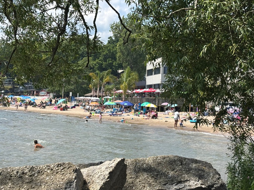 After Phil got up and got going, we rode our folding bikes across the bridge in search of an ATM so that we can get some Canadian cash to pay for docking at Port Dover Yacht Club (PDYC). We didn’t see a bank that was close and finally found an ATM down at the gas station. Their fee was $9.50 Canadian, which was pretty steep but I was able to get some Canadian $20’s. Then we rode along the channel path to the shanty building that used to have the sandals that were made there. They don’t do that anymore. I guess they retired after doing this for 50 years. We looked inside to buy Phil a couple pair of shorts, but they don’t have have any and recommended to go to the Surf Shack, which we did. Inside Phil bought two pair of shorts that fit him well but we’re on the high price. His current shorts have a hole(s) in them from when he keeps his wallet. We rode around and looked at all the changes that were there since our last visit. In place of the sidewalk along the channel, they now had a Long building that are condos. There’s a Harbor Museum on the north side of these condos, which we didn’t see. They are still doing some construction and we rode around and then rode back to the boat.