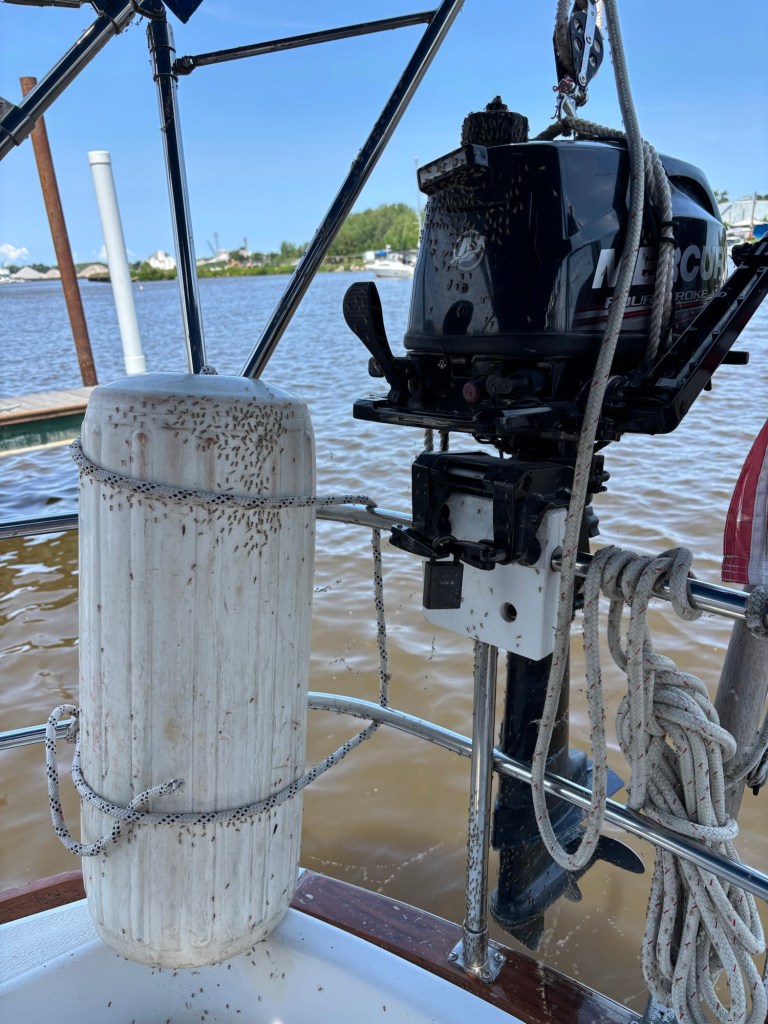 It’s to get in the low 50’s tonight, so closed up the boat and out a towel over the companionway hatch screens instead of getting out the solid ones. We have many midges on the roof tonight. I hope they leave tomorrow morning.