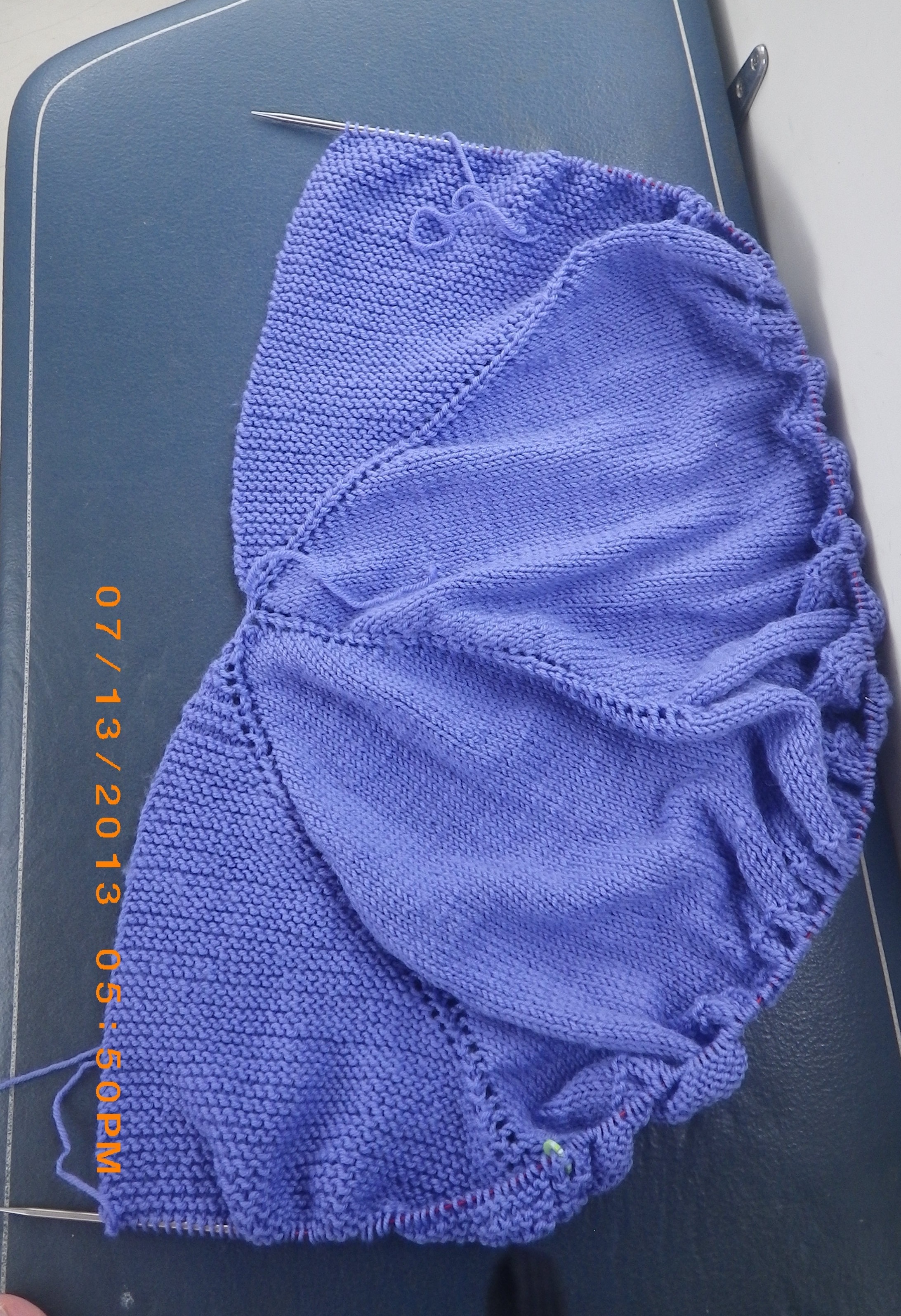 This is a shawl requested by my daughter, Rachel, in superwash Cascade 220. She found the pattern that she wanted and picked put the yarn. I have started the border.
